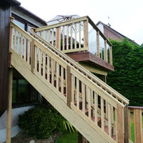 This is a project from a number of years ago where the customer had a steeply sloping garden with difficult to use tiers. We managed to work out a design to connect the whole of the property rear elevation creating a huge outside living and entertaining space. Costs for this could have been huge but we mixed the specification ensuring the very best timber structure and Millboard surface but saved cost with a bespoke timber handrail. Very proud team and super happy customer